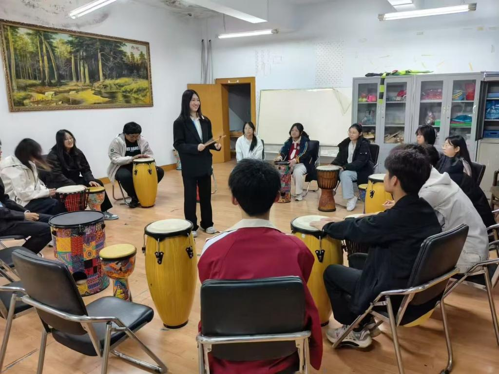 “鼓韵和鸣,心音共绽”鼓圈心理团辅活动现场