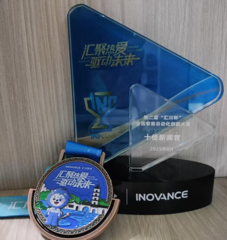 我校参赛团队在此次赛事中收获丰硕。该团队由韩坤老师带队、李欣老师指导,历经层层选拔与激烈比拼,先是在由北京理工大学承办的华北地区预赛中脱颖而出,成功晋级全国总决赛,并最终在总决赛中取得优异成绩。自今年五月初起,团队成员便全身心投入备赛,日夜钻研技术;在比赛过程中,他们沉着冷静,稳定发挥。杜广斌、王宇洁、余佳乐、孔雅婷四位同学凭借对智能自动化技术的热爱与不懈钻研,一路过关斩将,荣获全国铜牌,同时获得 3000 元奖金。此外,因团队在 “汇川杯” 比赛中的突出表现,还斩获了 “十佳新闻官奖”。
