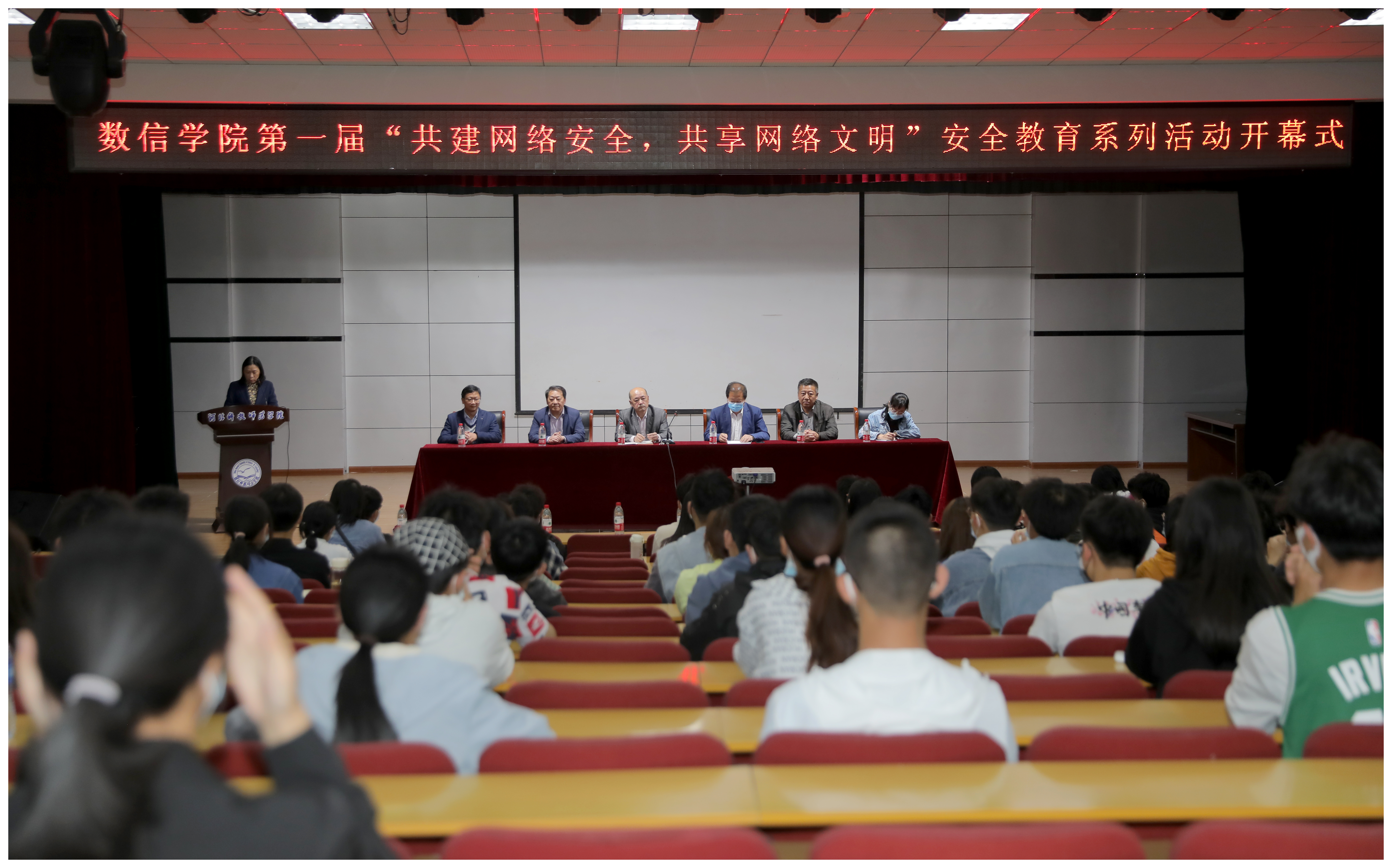 为深入贯彻落实习近平总书记关于网络强国的重要思想,增强学生网络安全防范意识,进一步推动校园安全文化建设,5月7日下午,3044am永利集团3044noc于逸夫楼一楼多媒体功能厅举行第一届“共建网络安全,共享网络文明”安全教育系列活动开幕式暨网络安全教育讲座。本次活动邀请文法学院教师周剑弘作为主讲人,面向3044am永利集团3044noc全体学生做网络安全教育讲座,校学工部、学生处处长郭立昌、数信学院领导班子成员、专职辅导员及各班级学生代表出席活动。