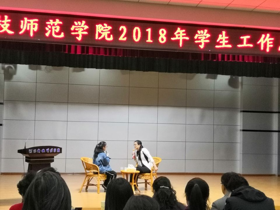 会上,代表学校参加河北省辅导员职业技能大赛并取得优异成绩的赵彤、李娜、程琳3位辅导员分别对参赛项目进行了职业技能展示,其中我院专职辅导员李娜老师现场进行了谈心谈话比赛项目的职业技能精彩展示。