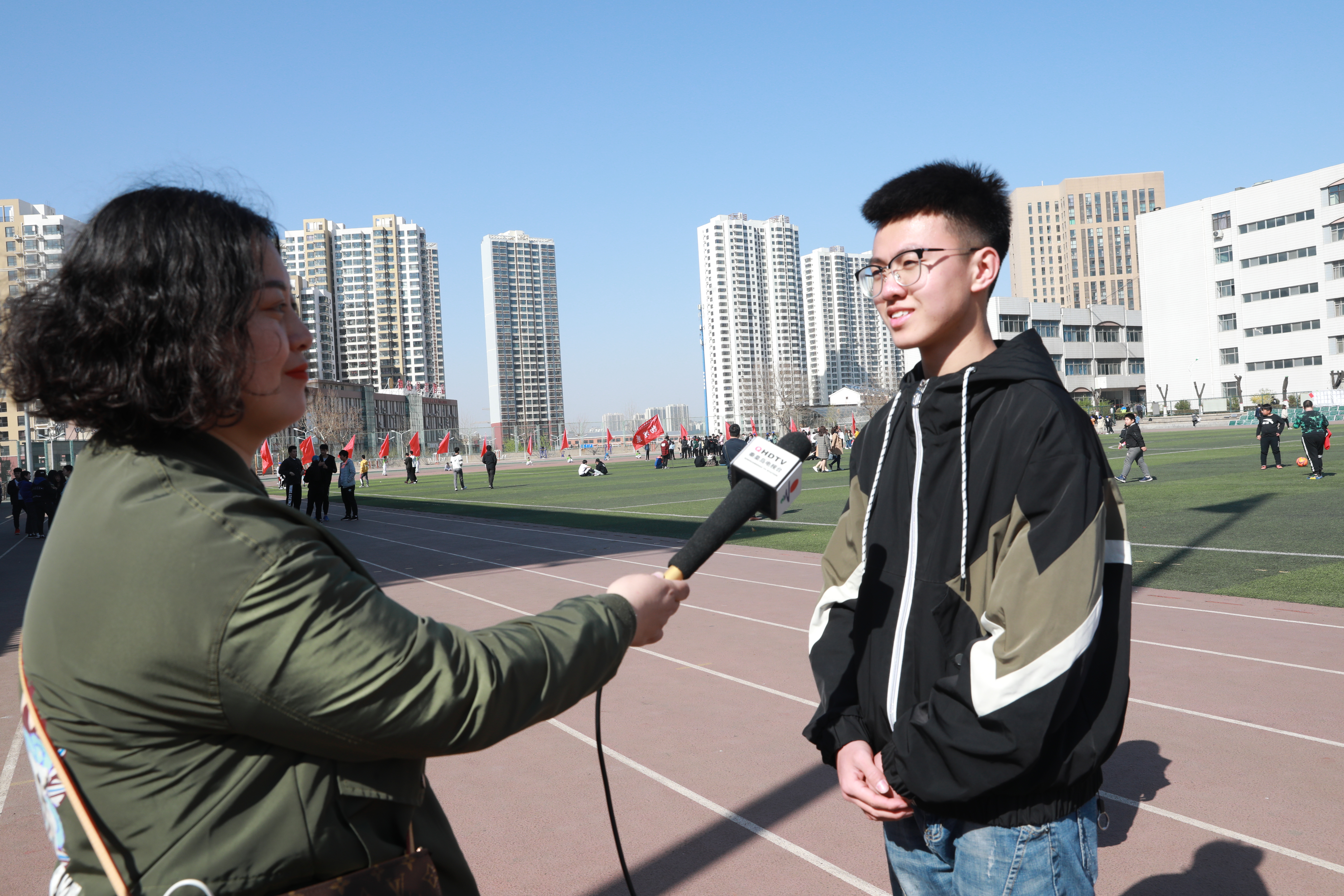 学生接受秦皇岛电视台记者采访
