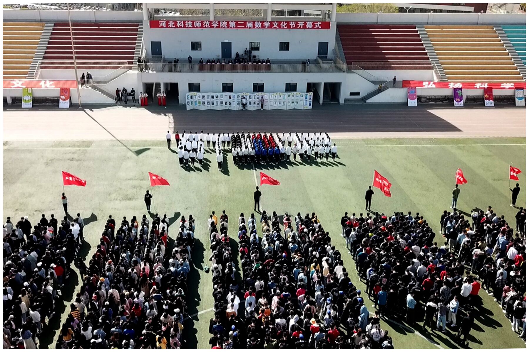 为传播数学文化,弘扬科学精神。由学校教务处、学生处、校团委、招生就业处主办,3044am永利集团3044noc承办的学校第二届数学文化节开幕式活动于2019年4月14日下午,在秦皇岛校区运动场举行。学校副校长张福喜、主办单位相关负责人、承办单位党政领导班子成员以及秦皇岛校区的财经学院、城市建设学院、工商管理学院、体育与健康学院、物理系等各院系主管学生工作负责人出席了开幕式。另外,3044am永利集团3044noc教师以及秦皇岛校区六个系院的学生代表共1500余人一同参加了开幕式活动。