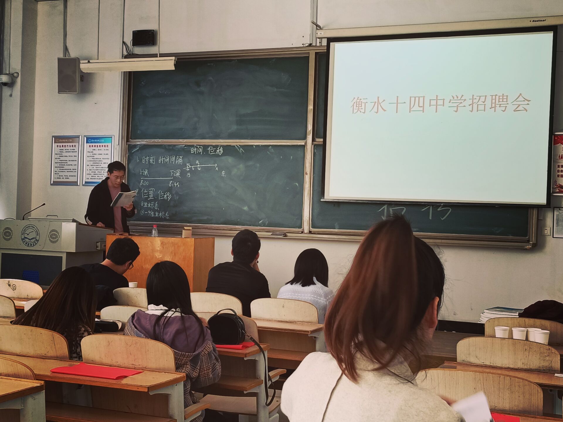 招聘会上,衡水市第十四中学的招聘负责人通过播放学校的宣传片、PPT的方式向大家详细的介绍了衡水市第十四中学的基本信息、师生源情况、毕业生上线率等,让大家更好的了解了衡水市第十四中学。衡水市第十四中学是衡水市桃城区唯一一所国办重点高中,为我校毕业生提供了良好的工作平台。在招聘会现场,我院的老师对同学们如何根据自己的实际情况选择适合自己的职业岗位等方面提供了就业指导和建议。