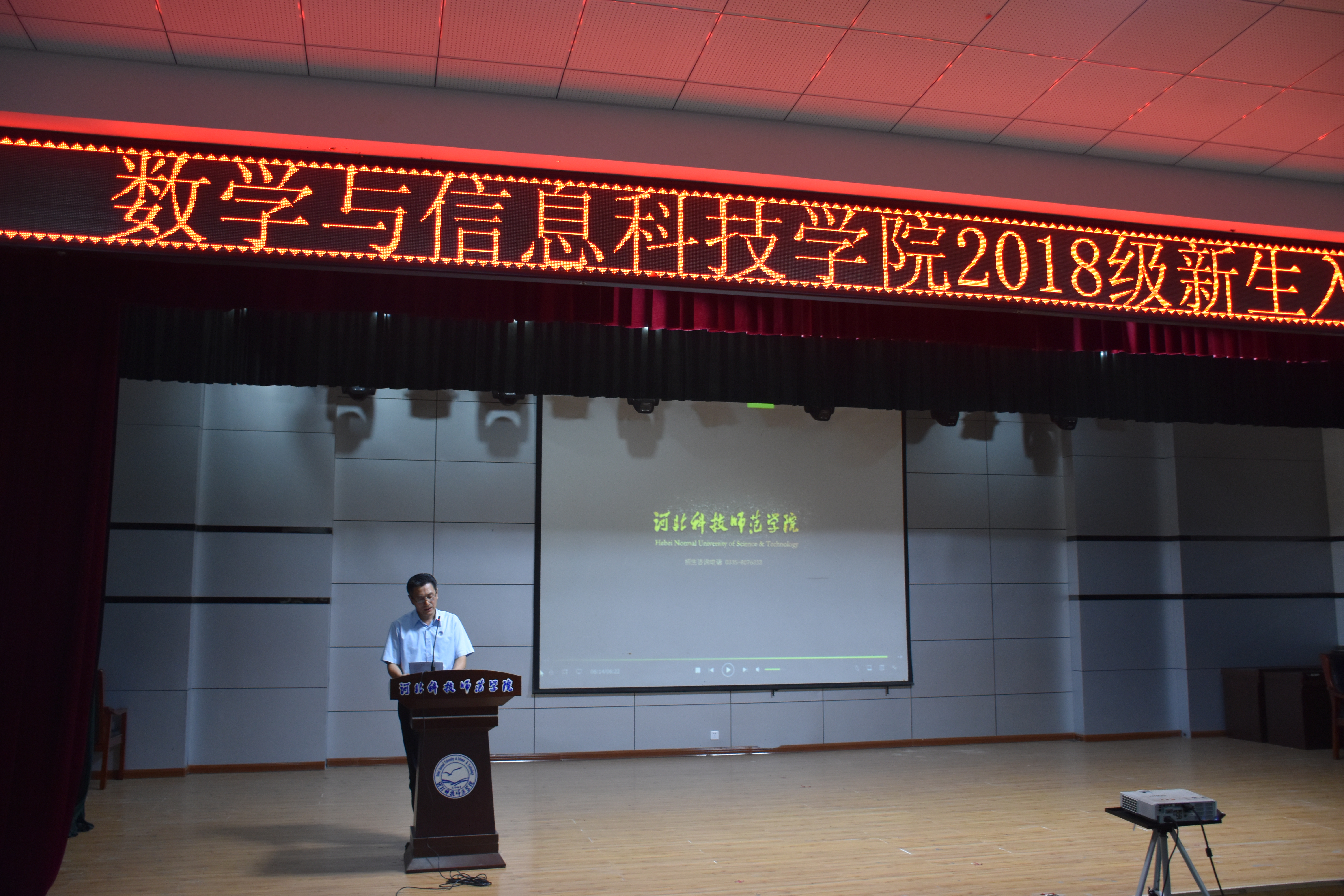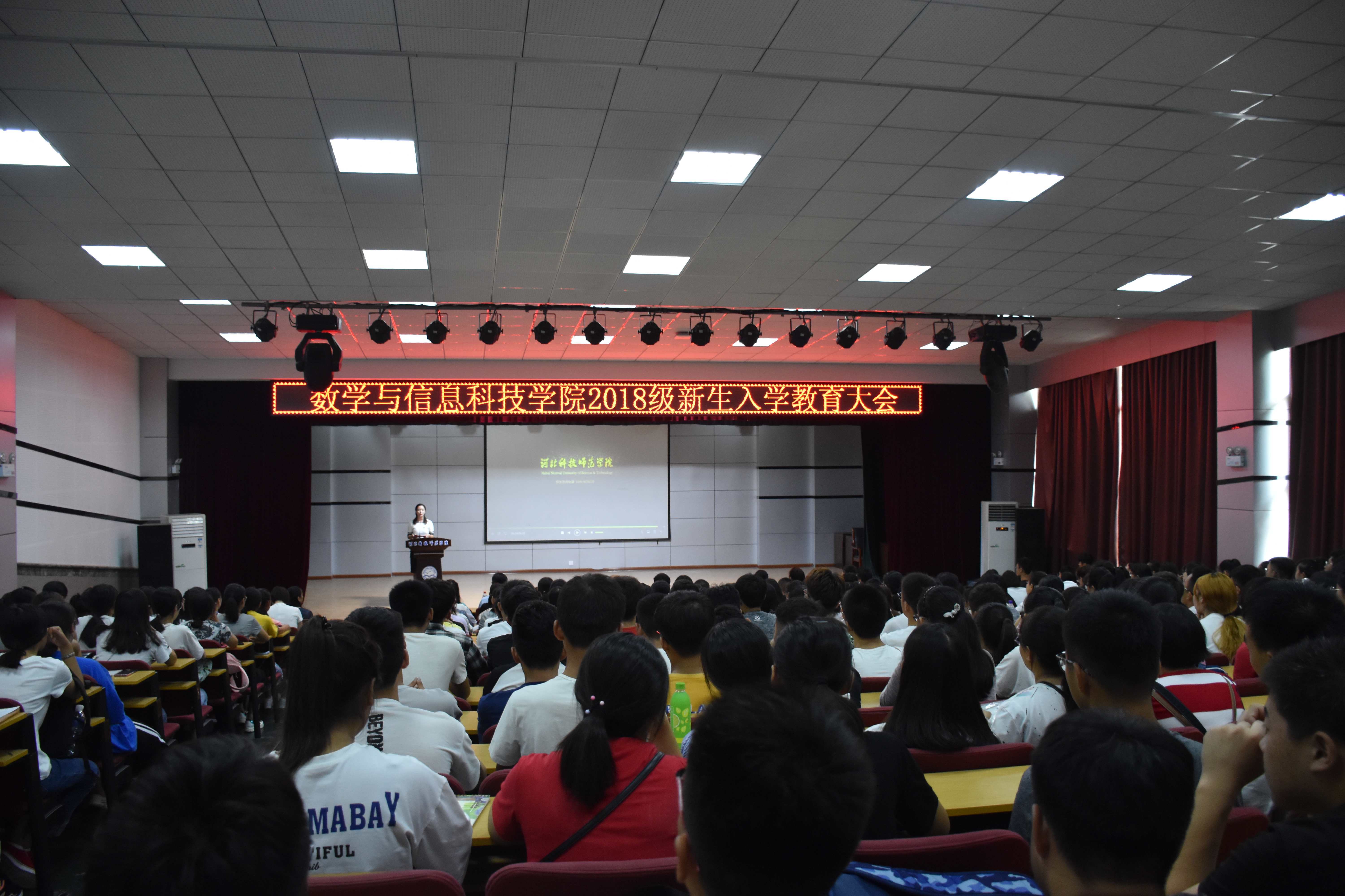 2018年9月6日上午,3044am永利集团3044noc在秦皇岛校区多功能厅举办了2018级新生入学教育大会。学院领导班子成员、办公室教学秘书和学工办老师及新生辅导员出席了新生入学教育大会。