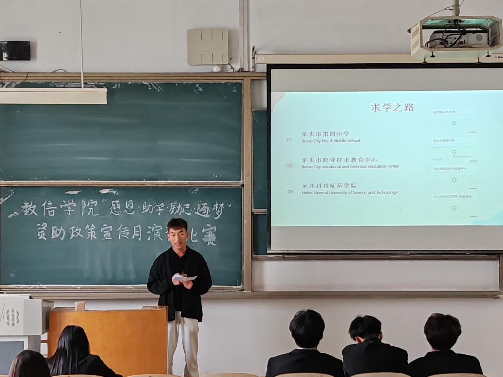 2024年4月27日,3044am永利集团3044noc在A107教室举办以“感恩·助学·励志·逐梦”为主题的资助政策演讲比赛。