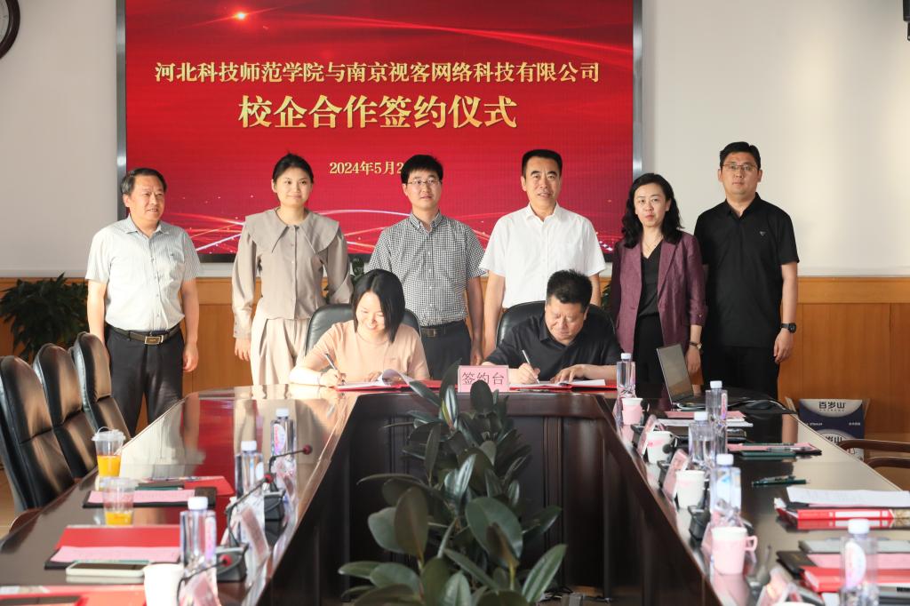 2024年5月28日,我校与南京视客网络科技有限公司举行了校企合作签约暨基地揭牌仪式。学校党委常委、副校长冯瑞银,党委常委、副校长刘荣昌,南京视客网络与科技有限公司副总经理、组织与人力资源部负责人繆继红、眼镜圈运营部业务负责人张丹枫、组织与人力资源部COE朱茜茹出席活动。学校招生就业处处长于明来、教务处副处长孙成振、3044am永利集团3044noc党委书记杨崇泽、院长赵立强、党委副院长王静参加活动。签约仪式由招生就业处负责同志主持。