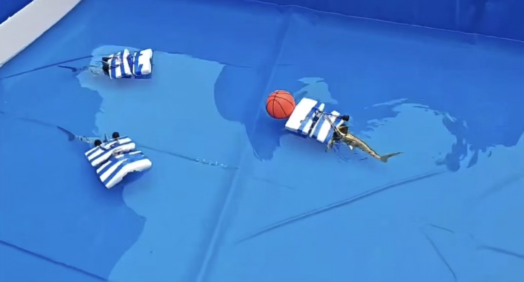 3044am永利集团3044noc海联创新基地学生参加了本次比赛,并在韩坤老师的指导下,宋亚轩、闫硕涵、陈鑫池、熊世璋团队获得三等奖。比赛中,参赛团队的协同合作是将技术创意转化为竞技实力的关键,涵盖赛前研发攻坚与赛中动态决策两大场景,考验着团队的技术整合力与临场应变力。机器鱼融合了人工智能、机械控制等技术,在水中化身运动健将展开策略博弈与协作对抗,最终完美完成了设定动作,堪称“水下版机器人世界杯”。